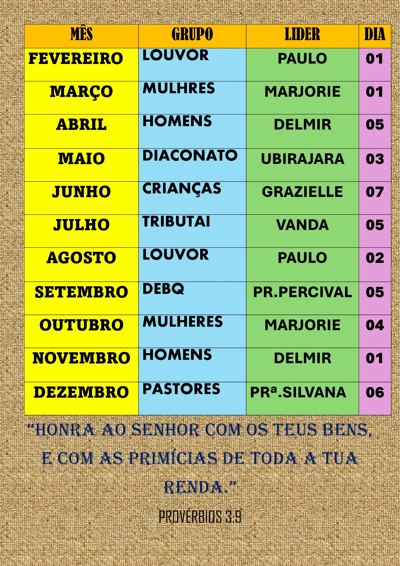 DIA E HORARIO DE CULTO
